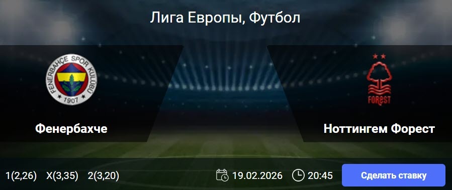 Статистика Фенербахче: В пяти из шести последних игр турецкой команды в рамках турнира фиксировалось не более двух забитых мячей. «Фенербахче» сохранил беспроигрышную серию в шести из семи последних встреч Лиги Европы (три победы и три ничьи). В семи из девяти предыдущих домашних матчей еврокубка стамбульцы не забивали больше одного гола. Статистика Ноттингем Форест: Команда не проигрывала в пяти из шести последних матчей в этом еврокубке (четыре победы и одна ничья). Ставка «обе забьют — нет» сыграла в пяти из шести предыдущих игр «Ноттингем Форест» в Лиге Европы. «Лесники» сохраняли свои ворота в неприкосновенности в первых таймах шести последних поединков турнира. 🎯 1X и ТБ (2,5) 🎲 кф (2,65) 👉 СДЕЛАТЬ СТАВКУ 🎁 ФРИБЕТ WINLINE - 3000₽ (промокод: BETWIN) 👉 СМОТРЕТЬ ПРОГНОЗ