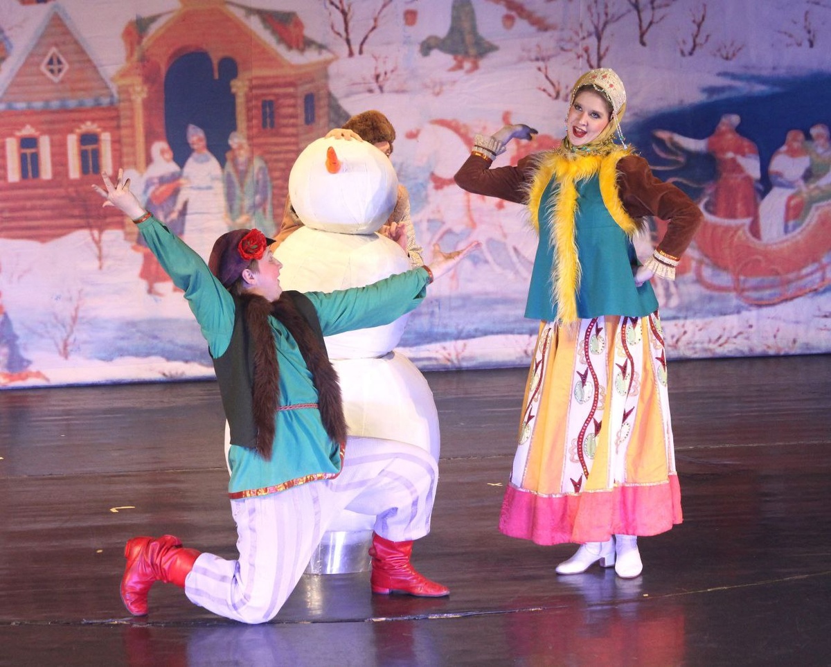 "Сказка про Емелины чудеса и царевну Несмеяну", сцена из спектакля. Селяне - Иван Сушков, Влада Уткина.