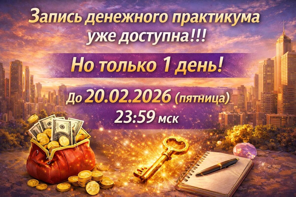 НО только ВСЕГО на 1 день! ⏰ Доступ строго до ЗАВТРА 20.02 (пятница) 23:59 мск. Потом запись закроется. Если вы не смогли быть онлайн – это ваш шанс не потерять точку, которая может изменить финансовую траекторию. 👉 Смотреть запись практикума Не откладывайте на «потом». Вы знаете, чем обычно заканчивается «потом». 🎁 И ещё важное. Для тех, кто быстро принимает решение идти дальше, я добавляю подарок за быструю оплату: Медитация «Настройка на Мельницу Изобилия» Это глубокая работа с вашим родовым механизмом достатка. И она доступна только тем, кто оплачивает сейчас. ⬇️⬇️⬇️ 3-дневный сказко-практикум «Денежный Уикенд» Три дня. Три сказки. Три механизма: Мельница – чтобы перестать пахать. Кувшин – чтобы деньги перестали утекать. Радио – чтобы Вы начали видеть возможности. Если внутри зудит: «Я могу больше. Но почему не получается?» Значит, это ваш момент. Сегодня – самая выгодная цена. Завтра – выше. 👉 Записаться на «Денежный Уикенд» Хватит откладывать жизнь на потом.