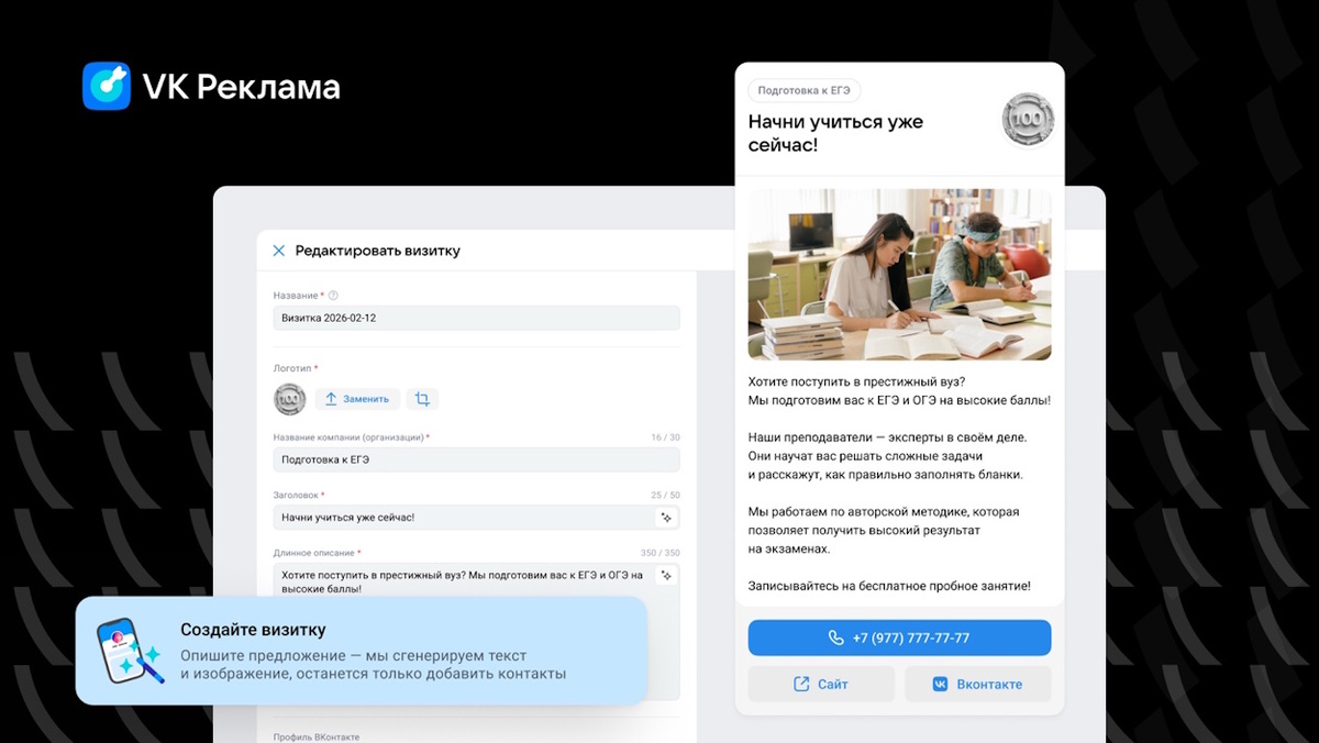 VK Реклама запускает «Визитки»: инструмент для сбора лидов без сайта и сообщества