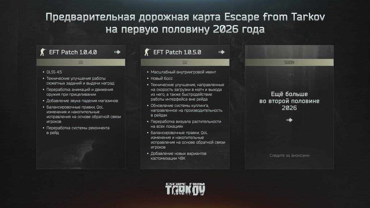 Escape from Tarkov получила дорожную карту на первую половину 2026 года