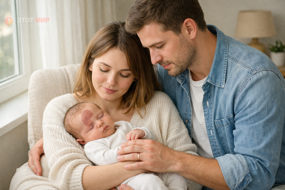 Иван наклонился ближе, чтобы рассмотреть сына, и в тот же миг его взгляд наткнулся на крупное тёмное пятно, занимавшее почти половину детского лица. Оно выглядело так неожиданно, что сердце в груди болезненно дёрнулось.