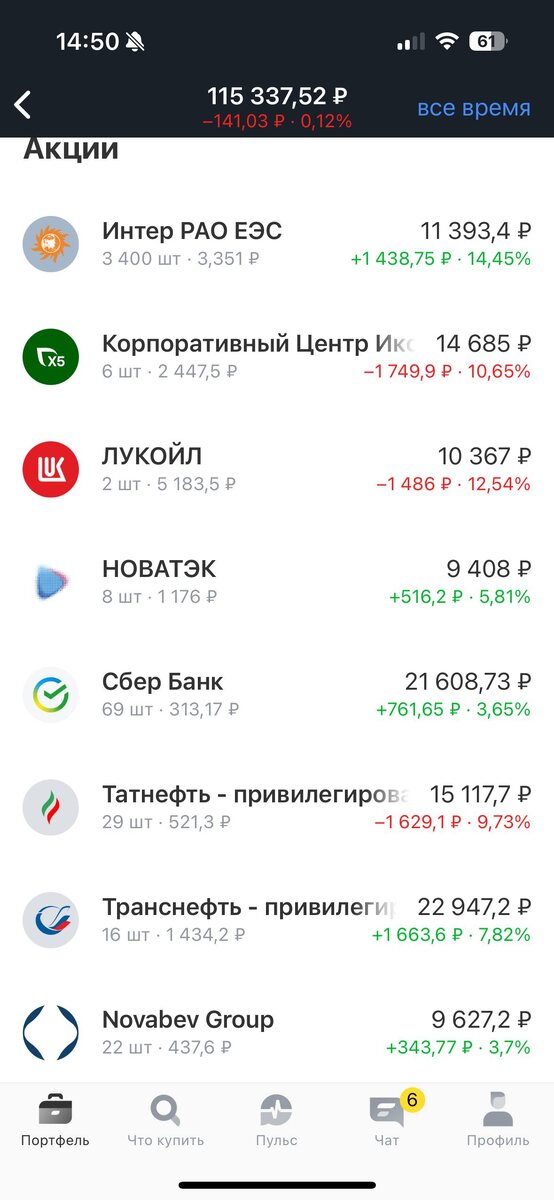 🍸 День #304 💰Всех приветствую! У нас вчера в регионе ни в какую не работал телеграмм, сегодня вроде все в порядке, соответственно, сразу вопрос, как у вас дела с телегой? Если заблокируют, где планируете общаться и смотреть новости?Поделитесь, интересны мнения! Вчера пополнил свой счет на 450 руб., сегодня сделал тоже самое. Купил 1 акцию Сбербанка 🏦 и решил взять одну акцию Татнефти ⛽️, да, у нефтянки дела не важные, но подумал, что усреднить - нормальная идея, тем более верю, что рано или поздно их здоровье придет в норму, ослабление рубля/возможное снятие санкций/изменение цен на нефть. Думаю на горизонте 1-3 лет, вполне что-то может измениться, а цены пока что очень даже приемлимые, да и опять же - снизить среднюю цену покупки, хорошая сделка Вчера выходили данные по инфляции - 0.12% против 0.13% неделей раннее, средняя годовая инфляция составляет - 5.87% против 5.93%. Инфляция снижается, хотя бы на бумаге - точно. Ставка уже 15.5%, так что не все так плохо. Может этот год бу
