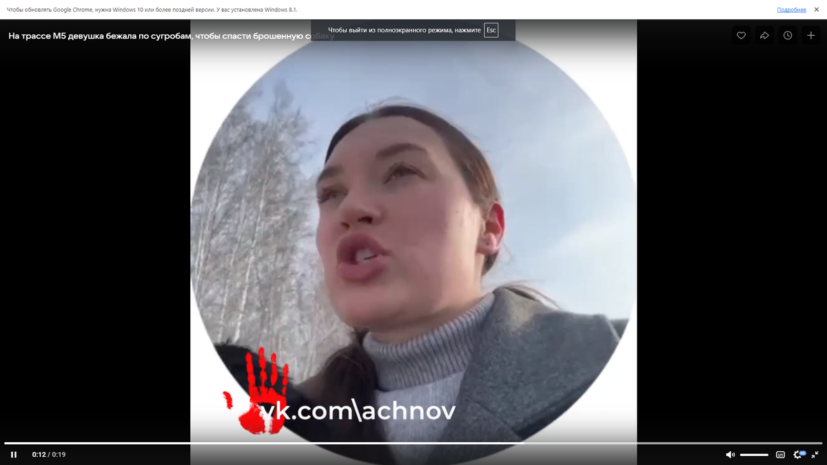 На трассе М5 девушка бежала по сугробам, чтобы спасти брошенную собаку