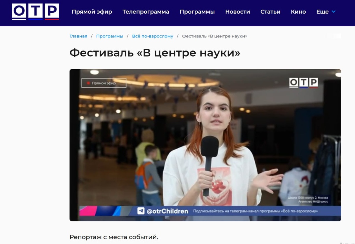 " Принтеры жужжат, экраны мерцают, а в воздухе запах инноваций. Наши корреспонденты на фестивале Московской науки, где тысячи школьников попробовали себя в роли настоящих учёных. Ну а рассказали об этом в эфире ОТР Дарья Тараева и Даниил Бурый. Руководитель студии журналистики 1358 Элена Владимировна Мусаелян Смотреть репортаж наших ребят с научного фестиваля Школа 1358 в Мах #школа1358 #ДОНМ #ТалантливыеДетиМосквы