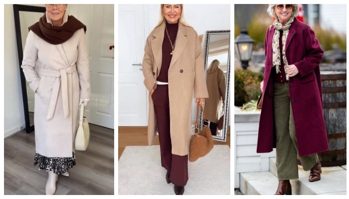 После 50 стиль не становится тише — он становится точнее. В этом возрасте особенно чувствуется вкус к качеству, фактуре и продуманным деталям. Пальто — ключевая вещь межсезонья, которая способна задать характер всему образу: от элегантной классики до яркого акцента. Серое пальто прямого кроя в сочетании с бордовой свитером и шёлковым шарфом выглядит интеллигентно и свежо. Чёрные брюки добавляют строгости, а сумка глубокого винного оттенка поддерживает цветовую игру. Такой образ подчёркивает статус и при этом остаётся женственным. Мягкое серое пальто поверх мехового жилета создаёт многослойность и уют. Пояс акцентирует талию, а сапоги до колена делают силуэт стройнее. Это отличный пример того, как текстуры — мех, шерсть, кожа — работают на эффект «дорогого» образа. Серое пальто с элегантным платком и высокими сапогами выглядит по-европейски сдержанно. Лаконичная цветовая палитра и чёткие линии создают ощущение уверенности и внутреннего спокойствия — именно то, что украшает женщину в люб