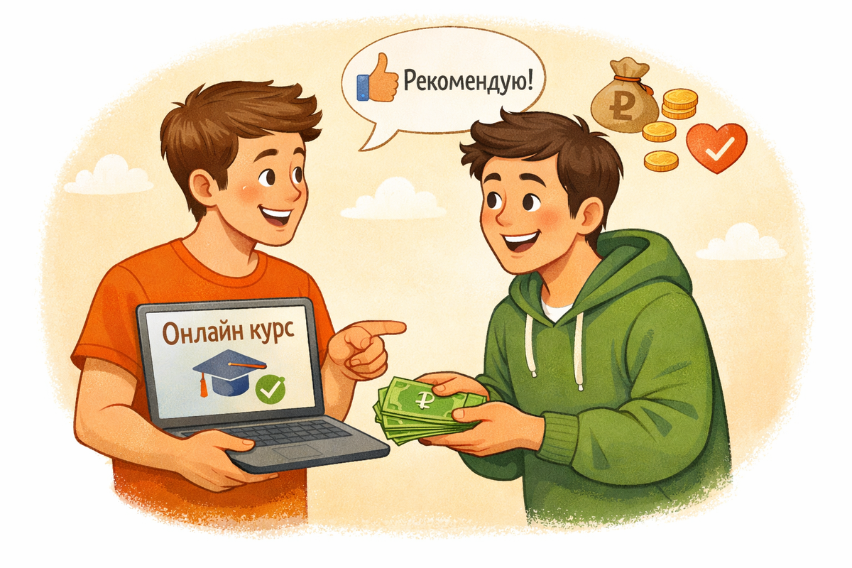 Представьте: вы запустили курс. Ученики довольны, пишут отзывы, советуют вас знакомым. Продажи идут - но хаотично. Вы не знаете, кто приводит клиентов и сколько их будет в следующем месяце. Знакомо? Это называется стихийное сарафанное радио. И это - деньги, которые просто утекают сквозь пальцы. Партнёрская программа - это когда люди рекомендуют ваш курс друзьям и получают за это деньги. Вы даёте человеку специальную ссылку. Он делится ею. Кто-то купил по этой ссылке - партнёр получает комиссию. Автоматически. Без вашего участия. Звучит просто? Так и есть. Но мало кто в инфобизнесе это выстраивает системно. Курс - это не кроссовки. Его нельзя потрогать перед покупкой. Человек ориентируется на доверие: к эксперту и к тому, кто рекомендует. Если ваш ученик получил результат и говорит другу "это изменило мою жизнь" - это продаёт лучше любой рекламы. По исследованиям Nielsen, 92% людей доверяют советам знакомых больше, чем рекламе. В инфобизнесе этот эффект ещё сильнее. Вот простая таблица-