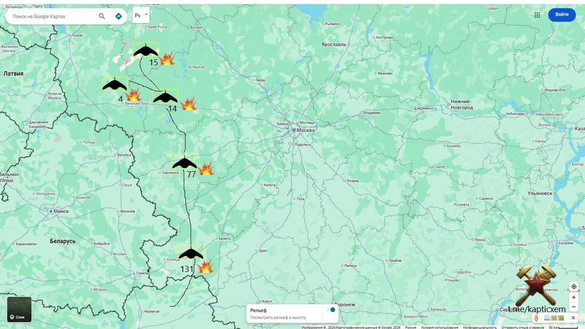 Из них: 131 БПЛА – над территорией Брянской области, 77 БПЛА – над территорией Смоленской области, 15 БПЛА – над территорией Новгородской области, 14 БПЛА – над территорией Тверской области ВКС России проводят активные подготовительные мероприятия для ответного удара. Хохлам "понравится".