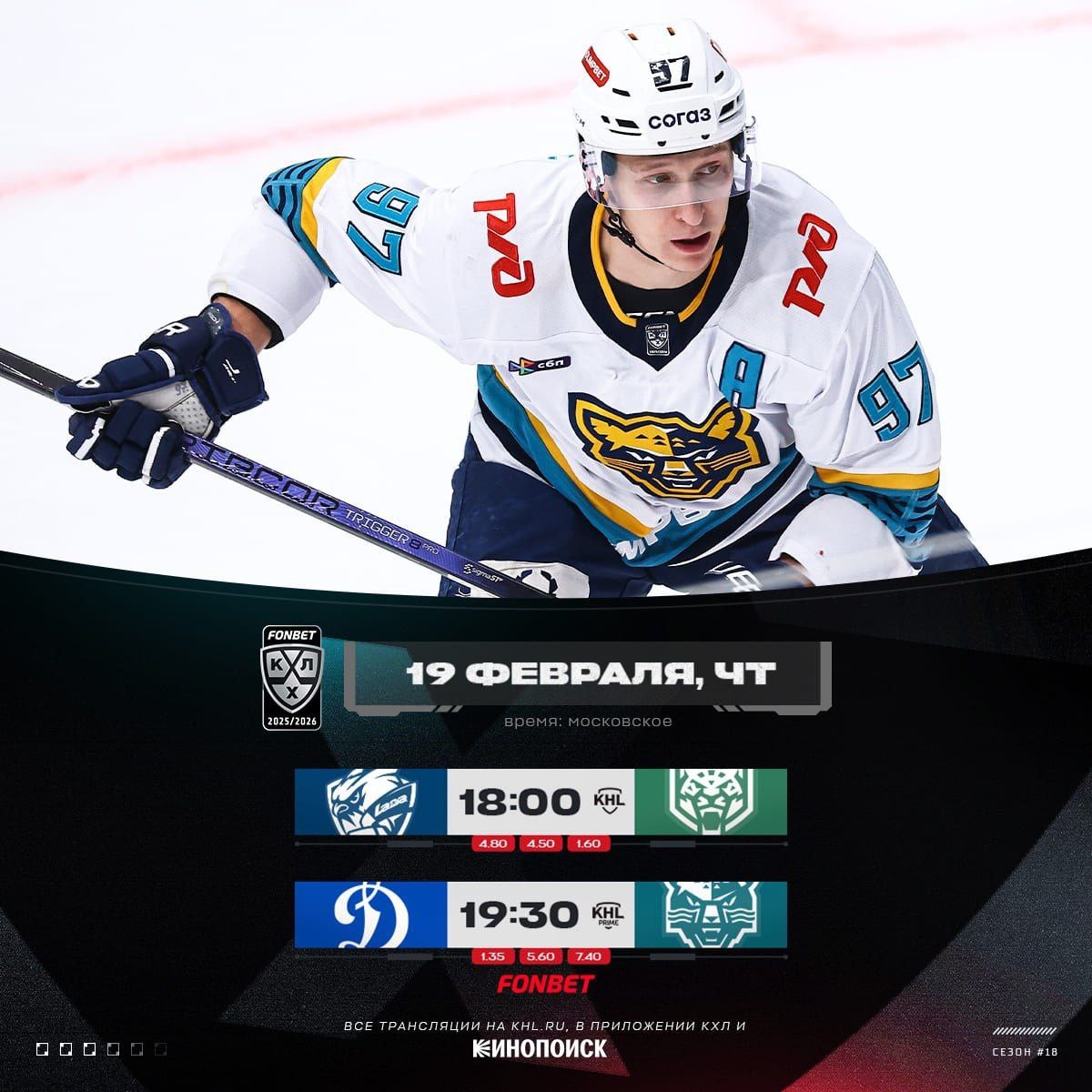 🔥 🇷🇺 В КХЛ сегодня две игры!