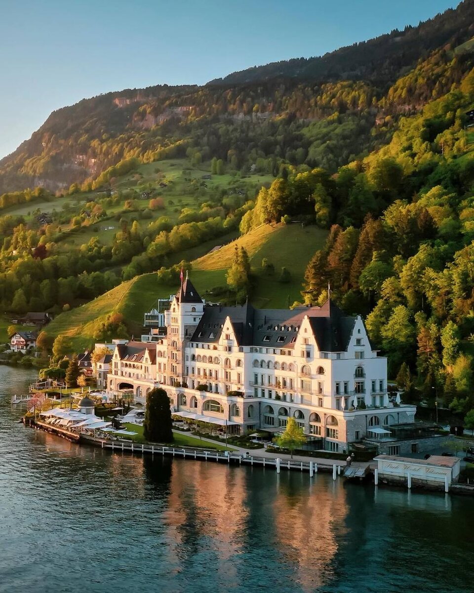 Утро в Витцнау начинается не с шума города, а с гладкой воды, в которой отражаются Альпы. Воздух здесь настолько чистый, что кажется — его можно хранить в хрустале. Именно на берегу Фирвальдштетского озера стоит Park Hotel Vitznau — место, которое давно выбрал швейцарский бомонд и те, кто ценит уединённую, негромкую роскошь. С первого взгляда — историческое здание начала XX века. Но за фасадом скрывается один из самых технологичных и продуманных отелей Европы. ИСТОРИЯ, КОТОРАЯ НЕ ЗАСТРЯЛА В ПРОШЛОМ Отель построили к 1903 году — в эпоху, когда Витцнау стал отправной точкой первой в Европе зубчатой железной дороги на гору Риги. Поезд ходит до сих пор, и подъём на Риги остаётся обязательным ритуалом для гостей. Сегодня Park Hotel Vitznau — это All Suites формат. Стандартных номеров здесь нет. Каждая из 47 сьютов — самостоятельное пространство с гостиной, спальней и индивидуальной концепцией оформления. Двери открываются автоматически, стоит лишь подойти. Интерьеры лаконичны и будто раство