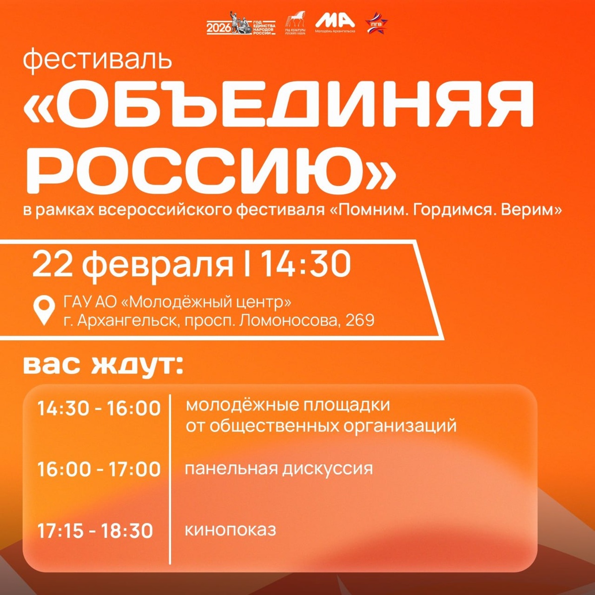 ! 22 февраля в городе состоится большой городской фестиваль, который объединит семьи и представителей разных возрастов из 58 городов страны. В программе — мастер-классы по росписи, танцам, спорту, знакомство с городскими объединениями и создание изделий для участников СВО. ⭐ Хедлайнер вечера — актёр Александр Песков. Живое общение, истории из-за кулис и возможность задать вопросы лично. 📒 22 февраля 14:30 | Молодежный центр (Архангельск, пр. Ломоносова, 269) 🧡 Количество мест ограничено. Как стать участником — смотрите в нашем МАХ 👈 😊 Подписаться на «Радар Поморья»