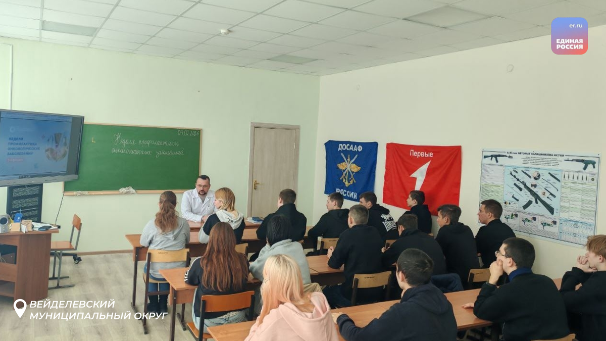 Для студентов Вейделевского агротехнологического техникума активисты организовали встречу с заведующим отделением профилактики, членом Партии Единая Россия Колесниковым Вячеславом Викторовичем. В рамках партийного проекта «Здоровое будущее» ребятам рассказали о видах онкологических заболеваний и важности их своевременной профилактики и подготовили список полезных привычек, позволяющих снизить и предотвратить развитие онкологии. На базе Валуйской средней школы №4 для учащихся состоялось увлекательное занятие: «Россия — мои горизонты». Через познавательные видеоролики они погрузились в мир профессий, узнали, какие дисциплины нужны будущему предпринимателю и в каких учебных заведениях можно получить профильное образование. Ребята на практике попробовали создать свой стартап в командной игре «Создай свой бизнес» и поучаствовать в тематической бизнес-викторине. В Ровеньском округе члены и сторонники Партии провели интеллектуальную игру «Колесо истории», посвященную Году единства народов. Уч