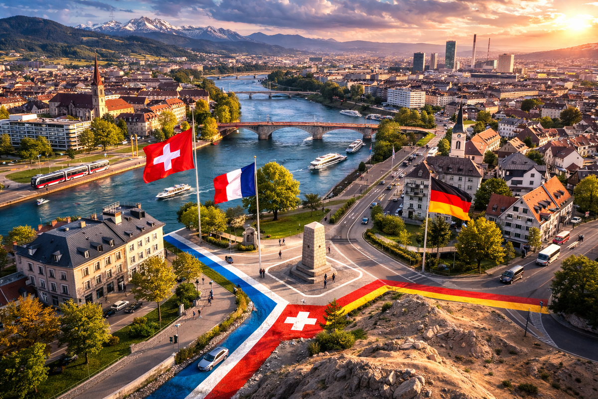 На карте Европы есть место, где границы трёх государств сходятся буквально в одной точке. Это район города Базель, где встречаются Швейцария, Франция и Германия. Здесь нет пограничных стен, высоких заборов или напряжённой атмосферы. Наоборот, жизнь течёт спокойно и естественно. Люди пересекают границы так же привычно, как переходят улицу.