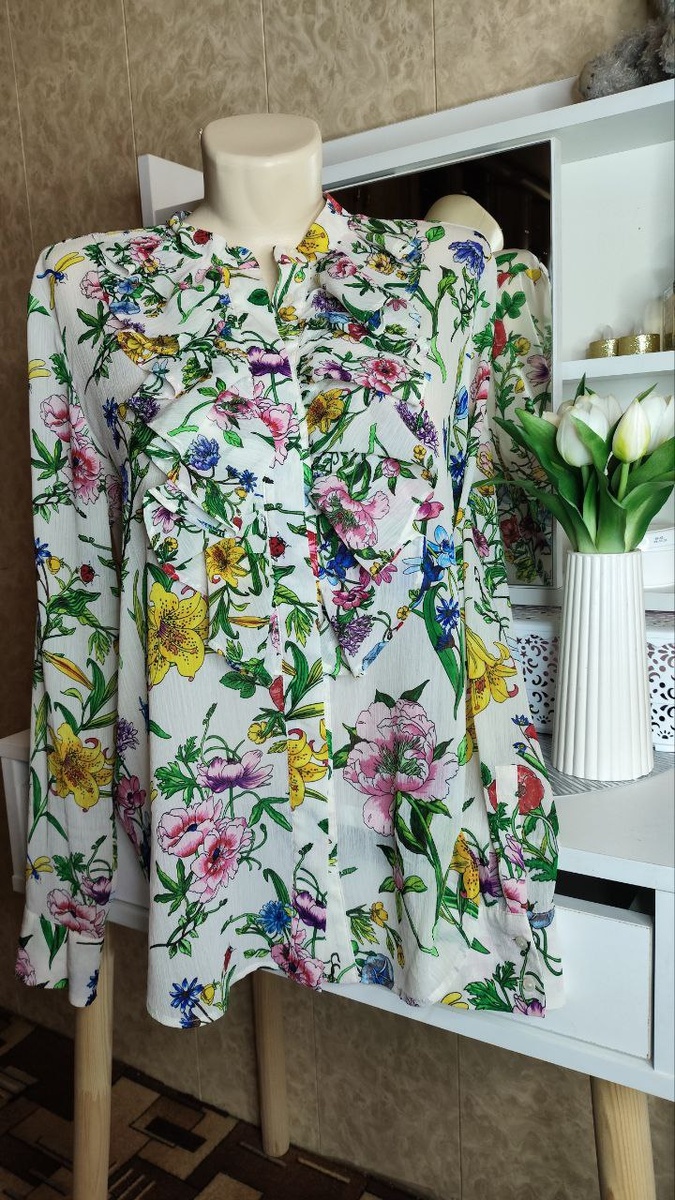 Как правило праздничные блузки и платья шьются из полиэстера, шифона. Я приверженец натуральных тканей, но именно полиэстер и шифон создают эффект лёгкости, воздушности, элегантности в одежде. Поэтому представляю вам женскую блузку от бренда H&M в отличном состоянии. Изготовлена из полиэстера, что обеспечивает комфорт и долговечность. Яркий цветочный принт добавляет свежести образу. Прямой фасон подходит на размер 46 (M)-48. Длинные рукава и свободный крой обеспечивают свободу движений. Длина по спинке — 66см; ширина плеч — 43 см; длина рукава — 63см. Цена всего 500 рублей без стоимости пересылки. Приятных покупок 🛍️ 🌷