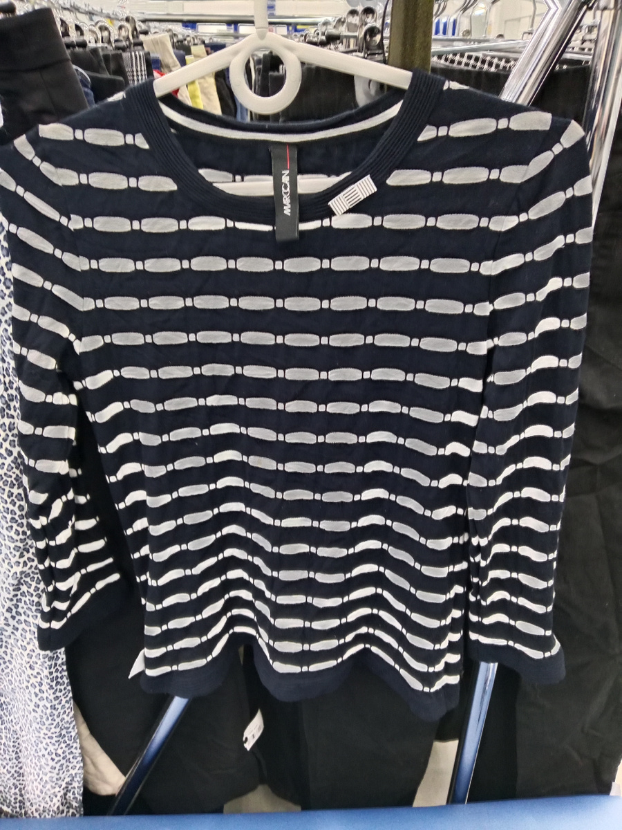 Вот такой итальянец пожаловал в наш секонд. Серого цвета, классической модели. Не плотный, у Malo толщина нити не более 17микрон. Посмотрели, приобщились к люксовому бренду.