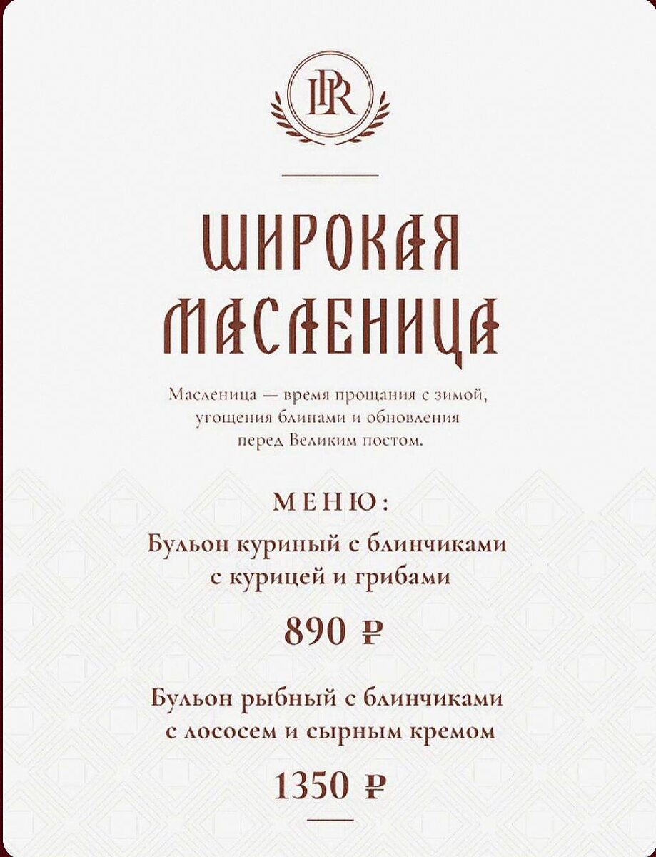 ». Время шумных гуляний, веселья и пышных столов. Но среди яркости праздника всегда хочется чего‑то простого и понятного. Я обожаю чистые бульоны — прозрачные, наваристые, с глубоким вкусом, который даёт долгий томный свар: мясо, рыба, кости, коренья, овощи. Лучший компаньон к ним — фаршированные блины, или, как раньше говорили, налистники. На Руси блины фаршировали тем, что было под рукой: щедрый урожай, продукты, разрешённые перед Великим постом. До конца масленичной в ресторане «Leeprime restaurant for spectrum», представлен сет моего авторства. В меню — два варианта: - Куриный бульон с блинчиками, фаршированными курицей и грибами. - Рыбный бульон с блинчиками, фаршированными лососем и сырным кремом. Тепло, по‑домашнему и идеально для «Разгуляя». Приятного аппетита! А потом, конечно, не забудьте сходить в баню.