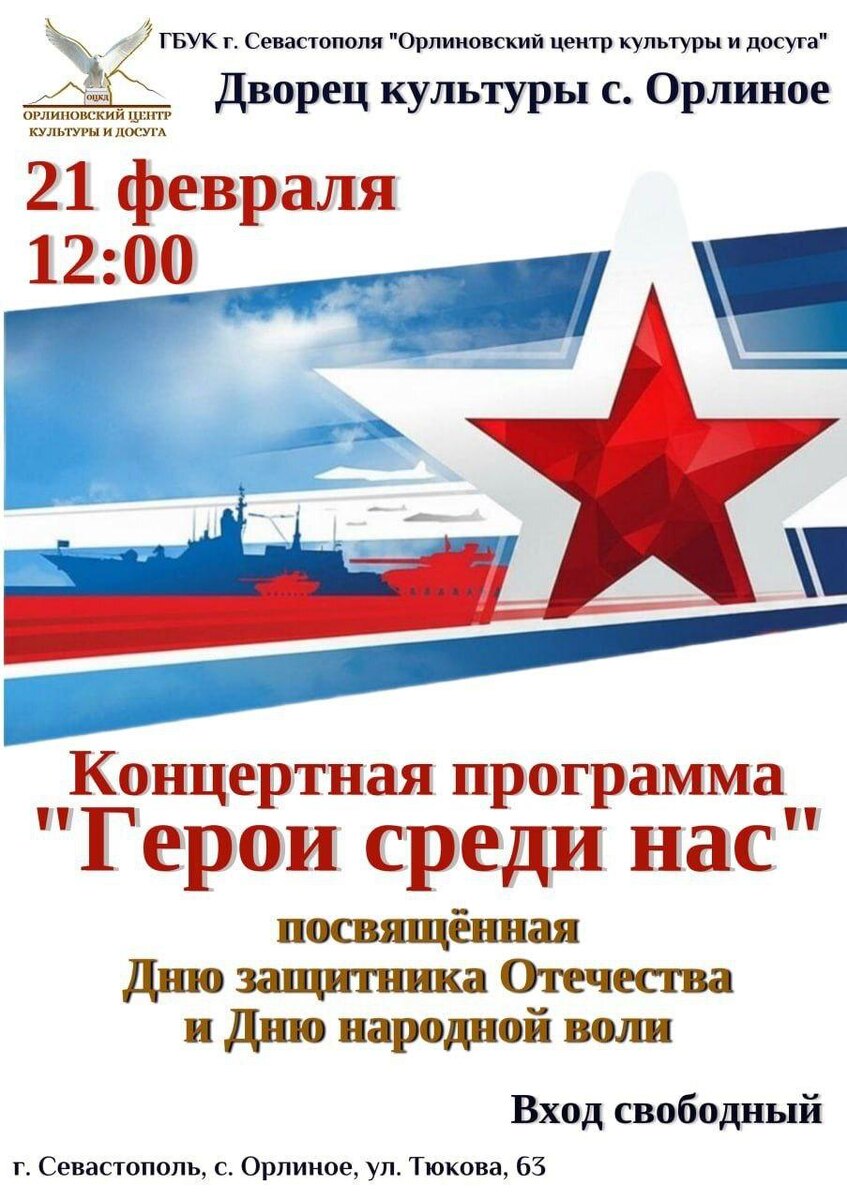 ! 21 ΡΠ΅Π²ΡΠ°Π»Ρ Π² 12:00 ΠΠ²ΠΎΡΠ΅Ρ ΠΊΡΠ»ΡΡΡΡΡ Ρ. ΠΡΠ»ΠΈΠ½ΠΎΠ΅ ΠΏΡΠΈΠ³Π»Π°ΡΠ°Π΅Ρ ΠΆΠΈΡΠ΅Π»Π΅ΠΉ ΠΈ Π³ΠΎΡΡΠ΅ΠΉ Π½Π° ΠΊΠΎΠ½ΡΠ΅ΡΡ ΠΊΠΎ ΠΠ½Ρ Π·Π°ΡΠΈΡΠ½ΠΈΠΊΠ° ΠΡΠ΅ΡΠ΅ΡΡΠ²Π° ΠΈ ΠΠ½Ρ Π½Π°ΡΠΎΠ΄Π½ΠΎΠΉ Π²ΠΎΠ»ΠΈ. ΠΠ°Ρ ΠΆΠ΄ΡΡ ΠΏΡΠ°Π·Π΄Π½ΠΈΠΊ ΠΌΡΠΆΠ΅ΡΡΠ²Π°, ΠΏΠ°ΠΌΡΡΠΈ ΠΈ Π΅Π΄ΠΈΠ½ΡΡΠ²Π°. Π ΠΏΡΠΎΠ³ΡΠ°ΠΌΠΌΠ΅: β¨ ΠΠΎΠ½ΡΠ΅ΡΡ Β«ΠΠ΅ΡΠΎΠΈ ΡΡΠ΅Π΄ΠΈ Π½Π°ΡΒ» β Π²ΡΡΡΡΠΏΠ»Π΅Π½ΠΈΡ ΡΠ²ΠΎΡΡΠ΅ΡΠΊΠΈΡ