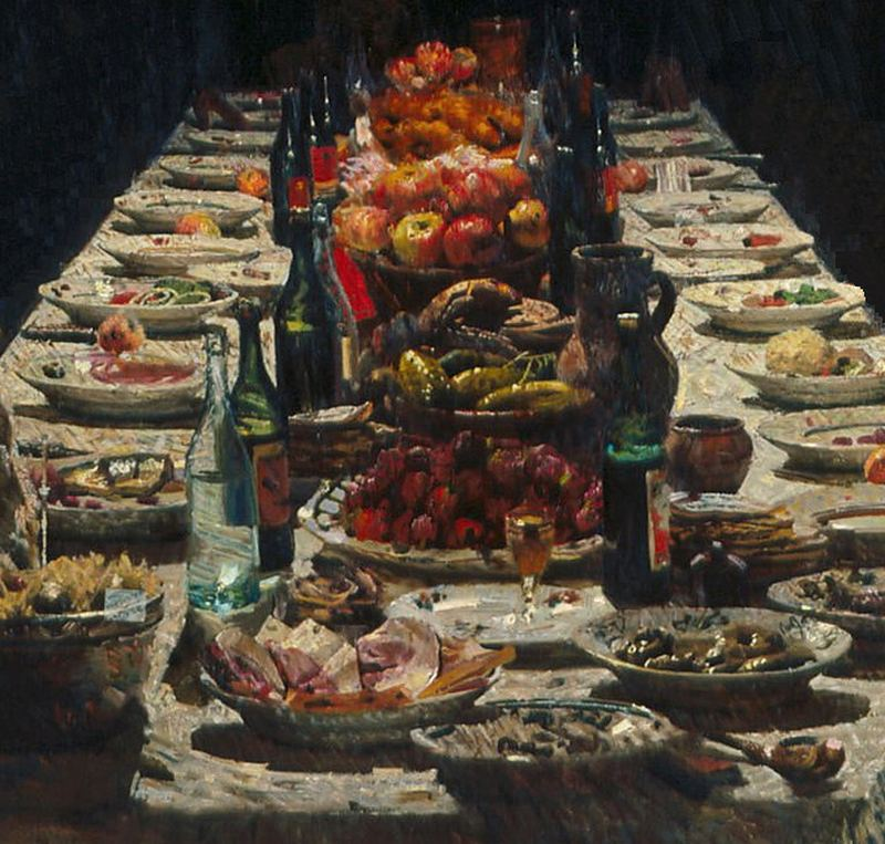 Ахмед Китаев. «Золотая свадьба». («За нашу партию!»). 1962. Фрагмент