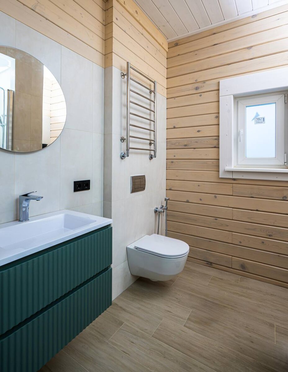 Как видите, в доме из бруса можно создать такой же современный и функциональный интерьер, как и в квартире 🏠 Можно реализовать практически любое решение — по стилю, материалам и визуалу. При этом сочетание дерева и других отделочных материалов создаёт особую атмосферу уюта. ✨ Но есть в отделке санузлов в деревянном доме один принципиальный момент: вся плитка должна подчиняться законам этого дома. Поэтому доверяйте плиточные работы не просто плиточнику, а мастеру, который работает именно с деревянными домами и понимает, как дом ведёт себя со временем. Вообще, главный критерий качества в деревянном доме — это не внешний вид сразу после сдачи, а то, как работы выглядят спустя время 👆🏻 Технология, опыт и понимание процессов — решают всё. Поэтому желаю вам красивых и грамотно отделанных санузлов. Дом из бруса камерной сушки по проекту «Аврора» площадью 177 кв.м 📍 в Серпуховском районе.