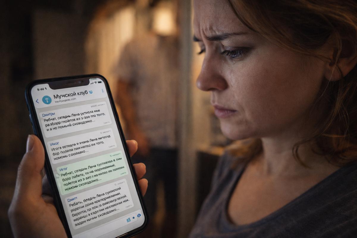 Лена поставила чайник и достала из холодильника йогурт. Андрей ушёл в душ после утренней пробежки. Его телефон лежал на столе экраном вверх, пришло уведомление. «Мужской клуб: 3 новых сообщения».