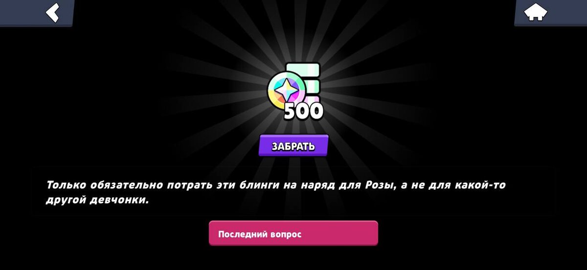 Чтобы залутать 501 блингов с диалога с Розой, пользуемся следующими репликами: