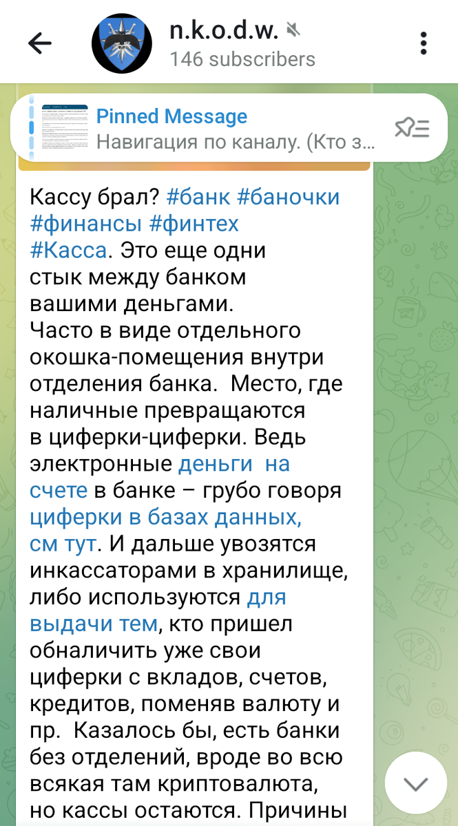 "Кассу брал? Это еще один стык между банком и вашими деньгами. Часто в виде отдельного окошка-помещения внутри отделения банка. Место, где наличные превращаются в циферки-циферки. Ведь электронные деньги на счете в банке – грубо говоря, циферки в базах данных. И дальше увозятся инкассаторами в хранилище. Либо используются для выдачи тем, кто пришел обналичить уже свои циферки с вкладов, счетов, кредитов, поменяв валюту и пр.