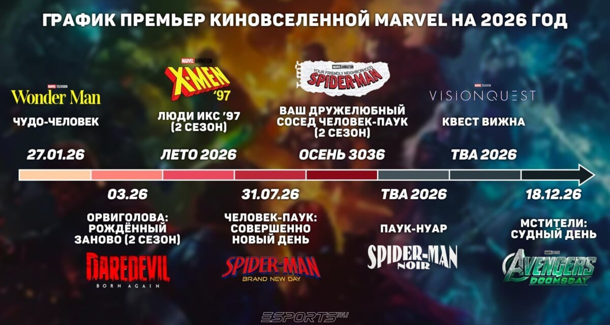 ! В 2026 году фанатов ждёт особенно много фильмов и сериалов по вселенным Spider-Man. Кроме того, ходят слухи, что компания готовится уделить особое внимание "Людям-Икс" после того, как сага "Мстителей" получит развязку. Чего ждать от Marvel — рассказываем в нашем дайджесте! 👍 Esports.ru