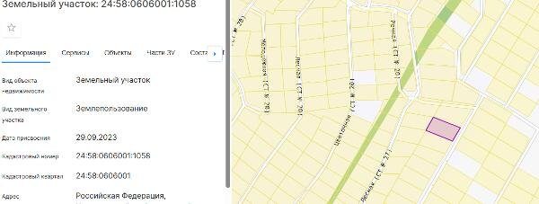 Название: Земельный участок с кадастровым номером 24:58:0606001:1058, площадь 860 кв.м., категория земель – земли сельскохозяйственного