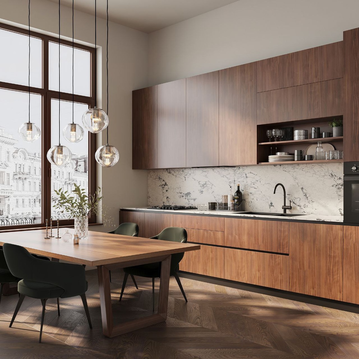 Настоящая роскошь — это глубина, фактура и природная гармония. Именно поэтому шпон — любимый материал дизайнеров премиум-интерьеров. Он сохраняет живую текстуру дерева и придаёт пространству теплоту и статус. 📎 Как использовать шпон, чтобы интерьер выглядел дорого: 🔗Стеновые панели — создают эффект архитектурности и визуально вытягивают пространство. 🔗Фасады мебели и кухни — добавляют утончённости и благородного блеска. 🔗Столы и консоли — выглядят дорого даже в лаконичном дизайне. 🔸 Шпон — материал, который говорит о вкусе. Он не кричит о роскоши, он её демонстрирует в нюансах. Мы работаем со шпоном так, чтобы каждая фактура выглядела естественно и дорого. Потому что настоящая премиальность — это не цена, а чувство совершенства в каждой детали.
