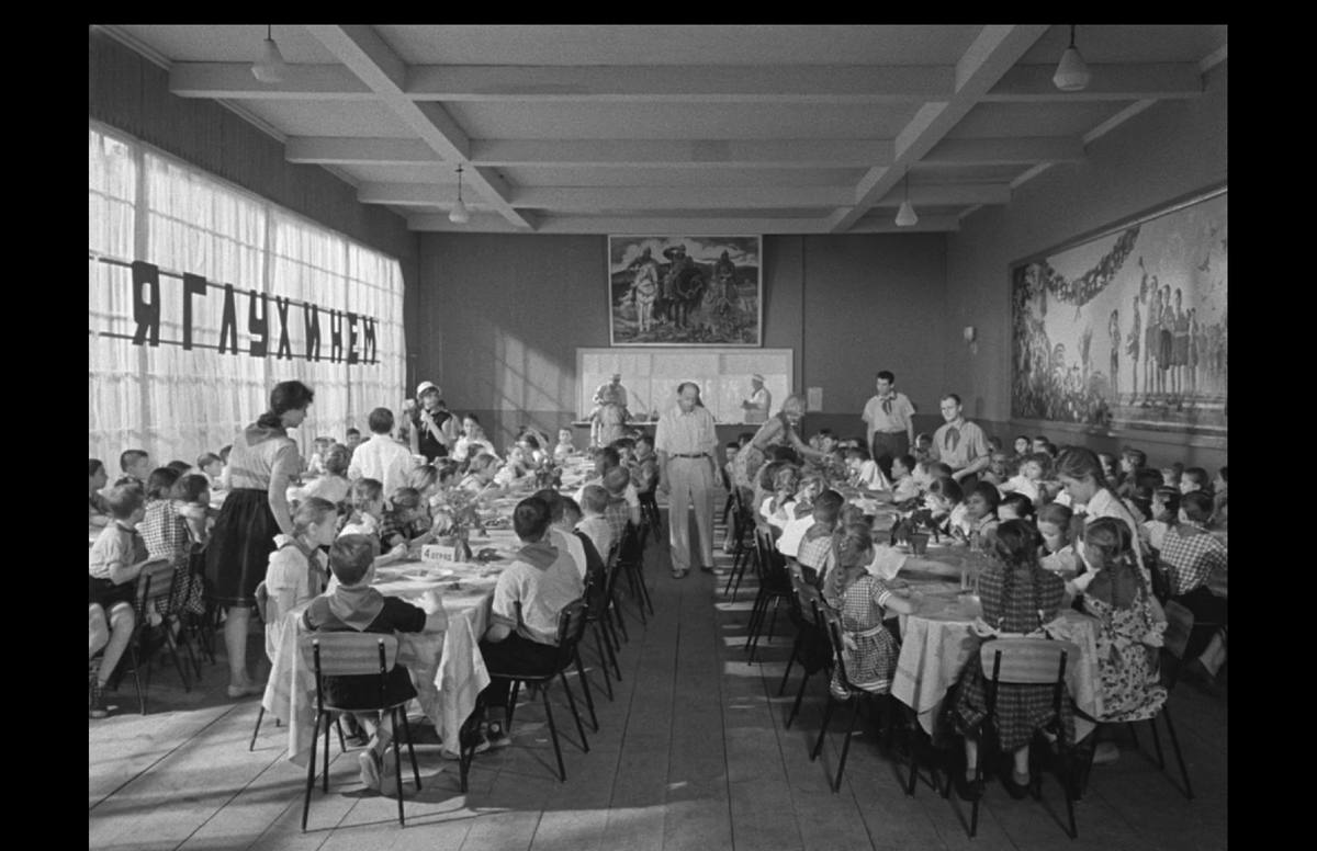 Используя лексику Фуко мы можем говорить, что здесь лагерь - классическое дисциплинарное учреждение, пронизанное порядком. И "главврач" товарищ Дынин неоднократно подчёркивает, что главное - это дисциплина! Особенно показателен один отряд пионеров, которые демонстрируют эту дисциплину через совершенно одновременный пионерский салют. Они - идеальный субъект дисциплинарной власти, который действует как одно
