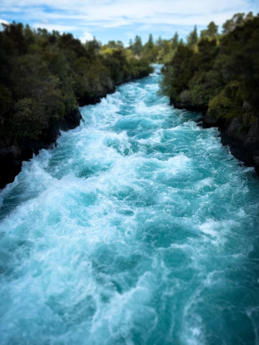 Недалеко от города Таупо на Северном острове находятся водопады Хука. Они вовсе не высокие (около 11 метров), но их сила – в объеме воды. Река Вайкато сужается до узкого каньона шириной всего 15 метров и через него (только вдумайтесь) ежесекундно проходит около 220.000 литров воды. Вода здесь ярко-голубая, почти неоновая. А еще это было единственное место, где мне все-таки удалось прокатиться на вертолете. До этого не везло с погодой и все мои брони отменялись. Подписывайтесь на Telegram-канал Никиты Непряхина.