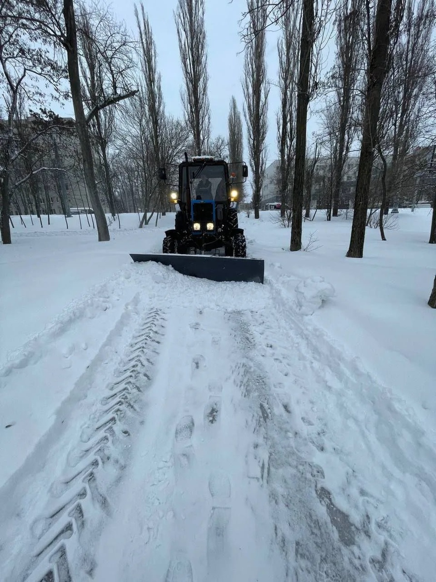 Рабочие трудятся в усиленном режиме, убирая снег с пешеходных дорожек. Расчистка будет продолжаться весь день. Фото: администрация города Курска.