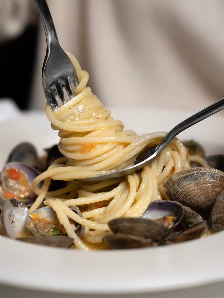 Здесь все располагает к неспешному ужину — мягкий свет, тишина зала и ощущение спокойствия в городской суете столицы. Попробуйте спагетти с вонголе — классика с идеальным балансом! Сладость моллюсков, аромат моря, оливковое масло и свежая паста, которую хочется есть медленно, наслаждаясь разнообразием вкусов.