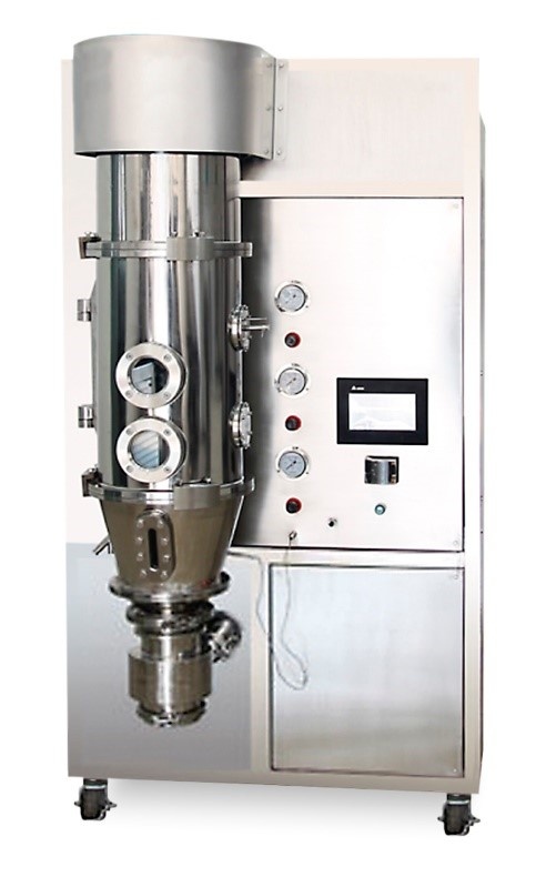 Лабораторное оборудование для отработки технологий производства фармацевтических препаратов, БАД, пищевых рецептур, продуктов тонкой химии. MINI представляет собой установку кипящего (псевдоожижённого) слоя классического типа с распределительной решёткой. Второй возможный вариант исполнения – роторный с вращающимся диском. Предлагаемая конструкция простая в эксплуатации, удобная для очистки, стабильная в работе и воспроизводстве процессов. Зернистый обрабатываемый материал размещается на решетке равномерным слоем. Под него подается поток нагретого газа или жидкости. Состояние продукта претерпевает изменения в зависимости от стадий теплового потока. Плавное начальное увеличение скорости соответствует стандартному фильтрованию. Твердые частицы на этом этапе остаются неподвижными. Дальнейшее ускорение приводит к критической точке. Гидродинамическое сопротивление и вес зернистого слоя уравниваются. Твердый продукт взвешивается, частицы теряют контакты между собой, начинают хаотично двигать