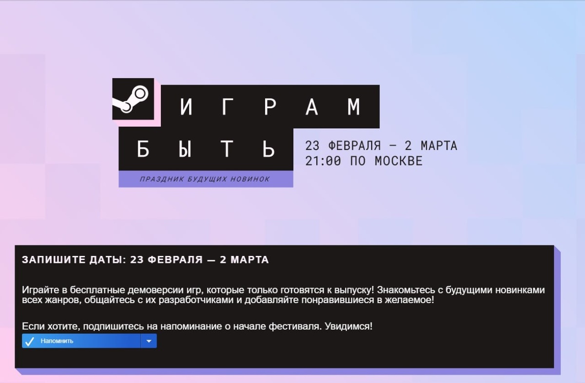 💥Здравствуйте товарищи, с 23 февраля по 2 марта в Steam стартует фестиваль Играм Быть.