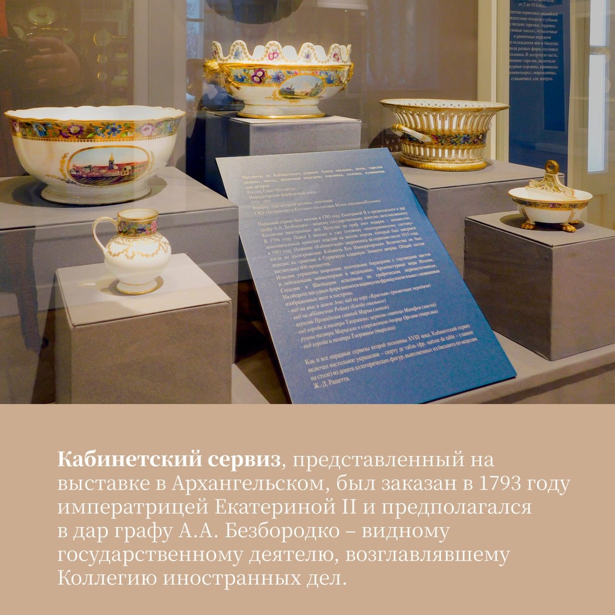Выставки в московских усадьбах ➡️ Архангельское Сюда из Усадьбы Кусково на некоторое время переехал знаковый фарфоровый сервиз, ставший частью выставки Императорский фарфоровый завод. Время Н.Б.Юсупова.1792-1802 Императрица Екатерина II вверила князю Н.Б. Юсупову развитие Императорского фарфорового завода — предприятия, поддерживающего престиж государства. Для создания посуды и декоративных изделий князь привлёк преподавателей и студентов Академии художеств. В декоре начали использовать позолоту «венского типа» по мастичному декору, орнаменты в «помпеянском» стиле, активно украшали предметы люстром и пейзажными миниатюрами. Хранитель фонда русского фарфора в Кускове и один из кураторов выставки в Архангельском Светлана Даниленко рассказала нам историю уникального Кабинетского сервиза - читайте в карточках! ➡️ Усадьба Кусково На выставке Королевский Копенгаген можно увидеть фарфор из важнейшего центра европейской керамической империи – Дании. На примере изделий XVIII — второй