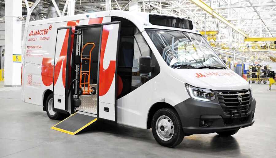 На Горьковском автозаводе сделали развозной фургон, получивший «Газель Логистик». Пока новинка существует в статусе прототипа. Этот фургон предназначен для развозной работы в городе с частыми остановками, например, для доставки грузов в пункты выдачи маркетплейсов или для курьерских служб. Новинка создана на базе низкопольного микроавтобуса «Газель Сити», оснащённого задней пневмоподвеской. У машины есть вместительный грузовой отсек с такелажными рейками и складными стеллажами по бортам — здесь можно разместить как мелкие коробки, так и габаритные товары. Водитель может пройти в грузовую часть фургона прямо из-за руля не выходя на улицу. А для выгрузки может использоваться широкая «автобусная» дверь с раздвижными створками или дверь в задней части кузова. Выдвижная аппарель упрощает работу с тяжёлыми грузами. Первый экземпляр фургона «Газель Логистик» передан в тестовую эксплуатацию компании «М.Видео» — машина будет работать в Нижнем Новгороде в течение нескольких месяцев. После этого