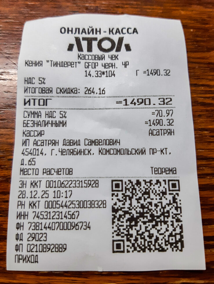 Назначать цену за 100 граммов — уже привычно: видишь «120 руб», вроде недорого, а потом понимаешь, что это 1200 руб/кг. Назначать цену за 100 граммов — уже привычно: видишь «120 руб», вроде недорого, а потом понимаешь, что это 1200 руб/кг. По науке это называется «ценовой фрейминг» (price framing). Это термин из поведенческой экономики: одну и ту же цену можно подать так, что она будет восприниматься по-разному. Например, «за 100 г» часто кажется «дешевле», чем «за 1 кг», хотя математика одинаковая. В интернете есть подробные исследования на эту тему. Так вот, с чаем бывает ещё веселее. Зашёл я в «Кантату». Магазины такие есть, продают чай и кофе. Думаю, не только в Челябинске. Купил 100 г чёрного чая — примерно такой же чай я обычно беру на Озоне с доставкой. Я там часто покупаю по 500 г, а иногда и по 1 кг. Обычно делаю так: сначала беру 100 г на пробу, а если понравилось — беру уже килограмм (желательно быстрее, пока партия та же). Итак, купил 100 граммов чая. Карточку приложил — и