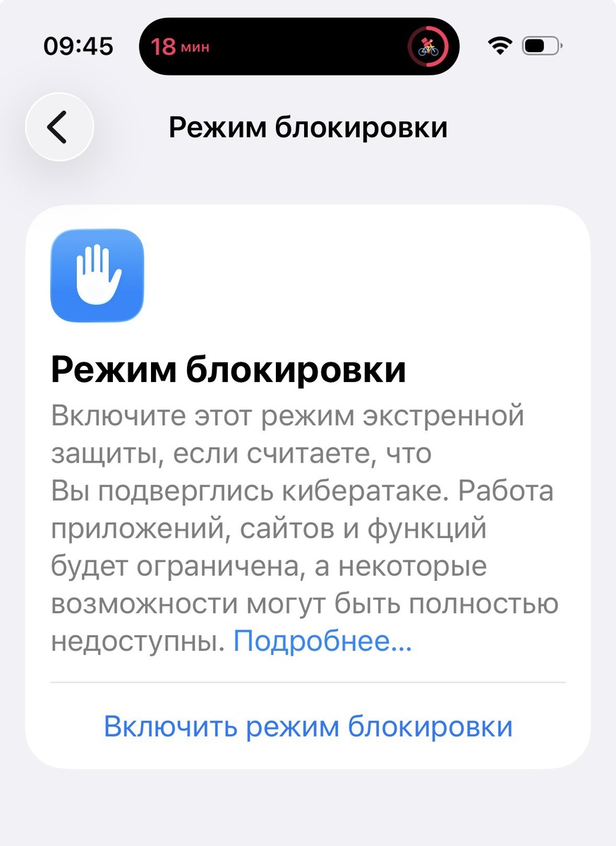 Пришел клиент и пожаловался на интересные проблемы: во-первых, сотовая связь перестала работать на звонки, но при этом мобильный интернет работает. А во-вторых, перестали открываться некоторые документы через встроенный Просмотр iOS. У нас на приемке мы воткнули SIM-карту другого оператора и связь заработала, поэтому тут отправили клиента в офис оператора для перевыпуска карты. А вот с просмотром было непонятно — списали на проблемы после обновления системы и пошли изучать вопрос. К счастью, клиент на разгадку вышел сам. Оказывается... режим блокировки. В целях повышения защищенности телефона он включил этот режим в настройках iOS. Однако там достаточно много побочных штук, среди которых как раз запрет на открытие большинства типа файлов, а также ограничение сотовой сети — отключается работа в сетях 2G и 3G. Поэтому сотовая связь от оператора пользователя и не работала, а на нашей тестовой SIM-карте все было хорошо. В итоге клиент отключил режим и всё вернулось на круги своя. Поэтому