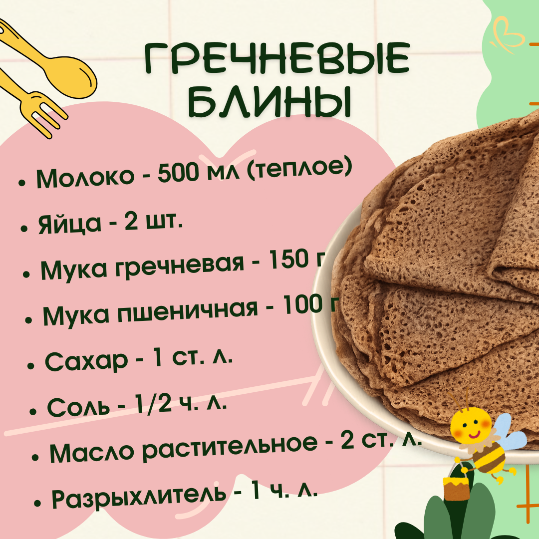 🥞 Хочется чего-то нового, сытного и с ароматным, чуть ореховым вкусом? Тогда этот рецепт точно для вас! Печем гречневые блины! 👇 Способ приготовления: 🔸 В глубокой миске слегка взбейте яйца с сахаром и солью. 🔸 Влейте половину теплого молока, перемешайте. 🔸 Просейте оба вида муки (и разрыхлитель, если используете) в жидкую смесь. Тщательно размешайте венчиком, чтобы не было комочков. Тесто пока будет густым — так и надо! 🔸 Постепенно влейте оставшееся молоко, постоянно помешивая, до получения жидкого теста. 🔸 Добавьте растительное масло, перемешайте. Дайте тесту отдохнуть 15–20 минут. Гречневая мука должна набухнуть. 🔸 Хорошо разогретую сковороду слегка смажьте маслом (перед первым блином). 🔸 Выпекайте блины как обычно, с двух сторон до золотистого цвета. ☝️ Совет: гречневые блины более хрупкие, чем пшеничные, поэтому переворачивайте их аккуратно, тонкой лопаточкой! ☀️ Приятного аппетита! #блины #гречневыеблины #рецепт #еда #кулинария #вкусно #завтрак #масленица #домашняяеда