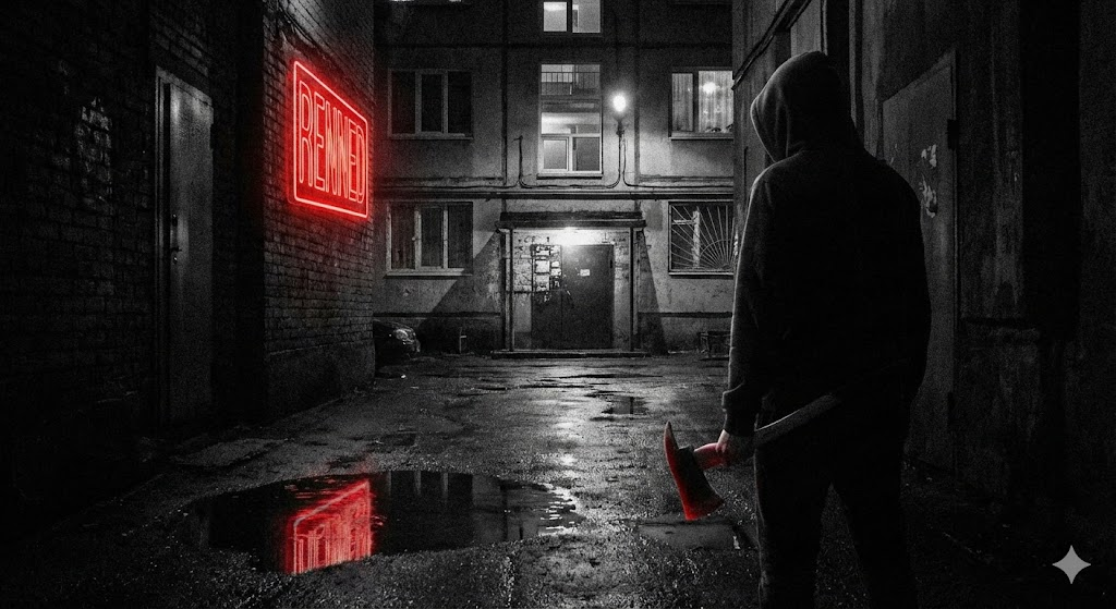 Снаружи раздался странный грохот. Звук был не из игры. Я снял наушники. Выглянул в гостиную. Моя входная дверь была пробита насквозь, а по ту сторону стоял человек с топором.