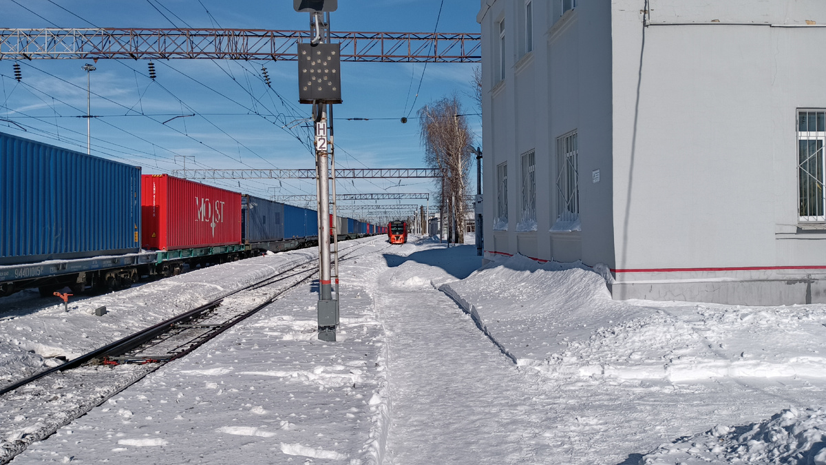 На станции Маклец я поймал в окно местный кабздец. То ли снегопады вывели из строя контактную сеть, то ли в праздники поток упал до нуля, но вместо четырёхвагонной ЭД4М Маклец - Бобрик сегодня на маршрут выдали РА2.