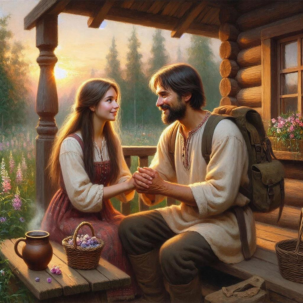 Прогулка вторая из цикла «Счастье в Чащобах», в которой Мила спросила меня о том самом утре, а я вдруг понял, что некоторые воспоминания с годами становятся только ярче — Бриль, а какой я тебе показалась в первый раз? Мы сидели на крыльце, пили вечерний чай и смотрели, как солнце садится за Чащобы. Вопрос застал меня врасплох. Я задумался. Перебрал в памяти сотни встреч, тысячи лиц, десятки лет путешествий... и вдруг понял, что то утро стоит особняком. — Ты хочешь честно? — спросил я. — А как ещё? — улыбнулась Мила. — Ну... когда столько лет за плечами, иногда кажется, что ты уже всё видел. Все расы, все характеры, все чудеса. Сидишь такой старый мерилианец с оттопыренными карманами и думаешь: «Меня уже ничем не удивить». А тут ты идёшь по тропинке с этой своей корзинкой... — И что? — А я чуть с крыльца не свалился. Мила засмеялась. Тот самый смех, от которого у меня до сих пор внутри всё переворачивается. — Правда? Я тебя так напугала? — Не напугала, — я покачал головой. — Удивила. По