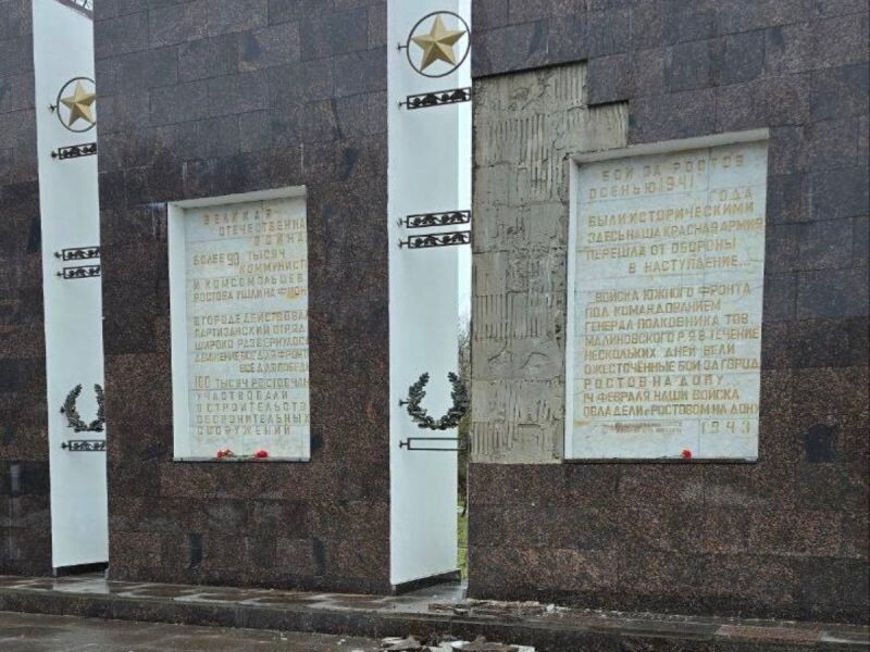 В Ростове у стелы Славы в Кумженской роще отвалилась отделочная плитка. Снимки разместили в соцсетях местные жители.