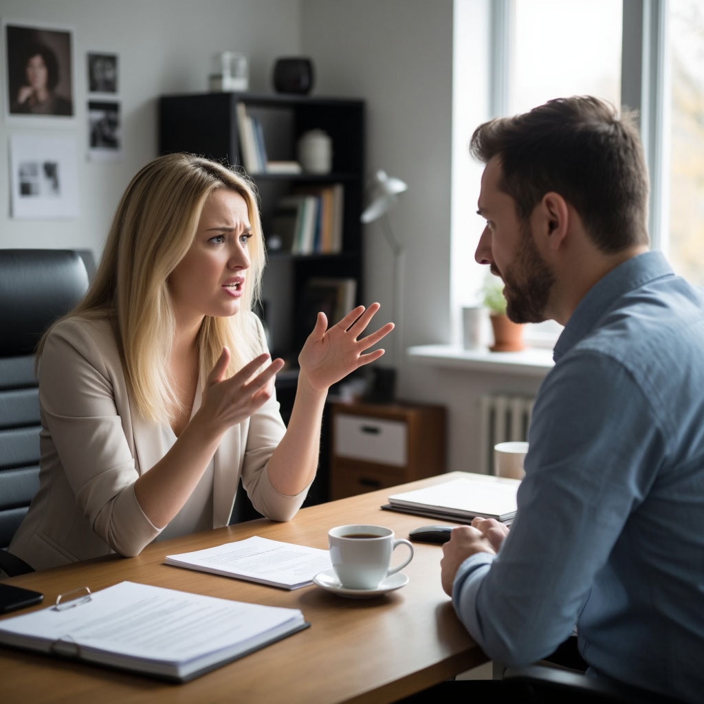 — Спокойно? — она сделала шаг вперёд, почти втолкнув его обратно в квартиру. — Ты два месяца твердил, что вот‑вот разведёшься! Говорил, что дом уже почти оформлен на меня. А вчера я случайно встретила твою жену возле магазина — и она, представьте, живёт там же, где и раньше!