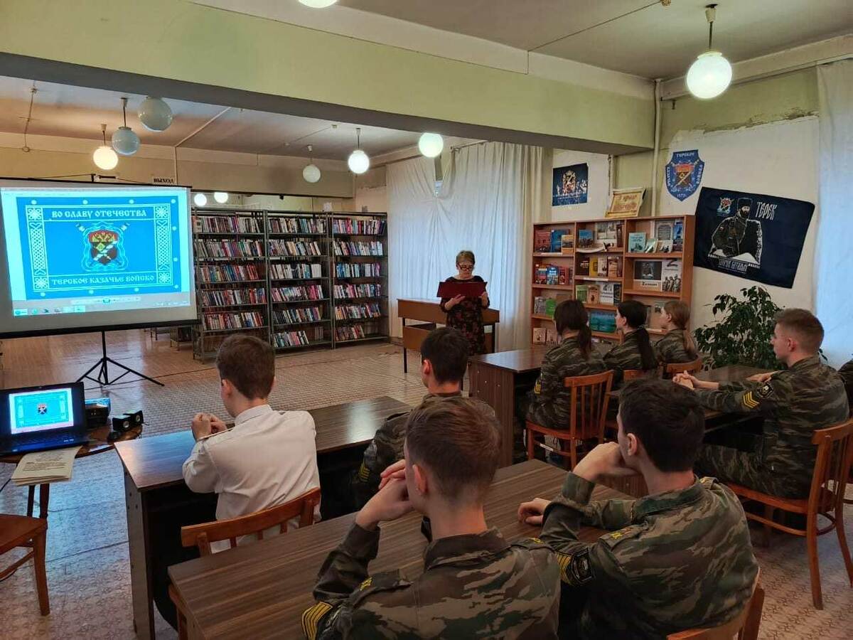 История казачества золотой нитью вплетена в прошлое России. Ни одно знаковое событие не происходило без участия казаков. Именно традициям, а также культуре и быту казаков был посвящён час информации «Казачье слово крепче камня», проведённый 19 февраля библиотекой-филиалом № 2 в клубе «Казачий дозор» для кадетов 9-К класса МБОУ СОШ № 5 с кадетскими классами им. А. Т. Губина, и направленный на воспитание интереса к прошлому своих предков, гордости за свой народ и формирование у молодёжи ответственности за сохранение культурно-исторического наследия родного края, осознание причастности к прошлому, настоящему, будущему казачества. Он состоял их трех частей. Первая часть, была посвящена истории Терского казачества. Во второй части «Культура казачества», присутствующим рассказали о том, как казаки организовывали свою жизнь, обустраивали быт, берегли и уважали традиции своих отцов и дедов. Было рассказано о многообразии казачьего устного творчества: о пословицах и поговорках, зародившихся сре
