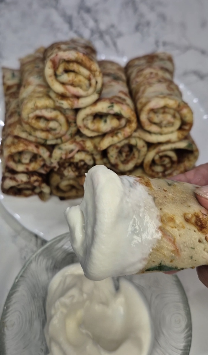 Прекрасный вариант для завтрака или обеда, который зарядит энергией на весь день. Кефир 1 ст (250 мл) Яйцо 2 шт. Сахар 0,5 ч. л. Соль 0,5 ч. л. Пищевая сода 0,5 ч. л. Мука 180 г в/с Масло растительное 2 ст. л. Кипяток 1 ст. Колбаса любая 120 г Сыр 90 г Веточка зелени #блины #домашняякухня #вкусноисытно #рецепты #масленица2026 #масленичнаянеделя #еда