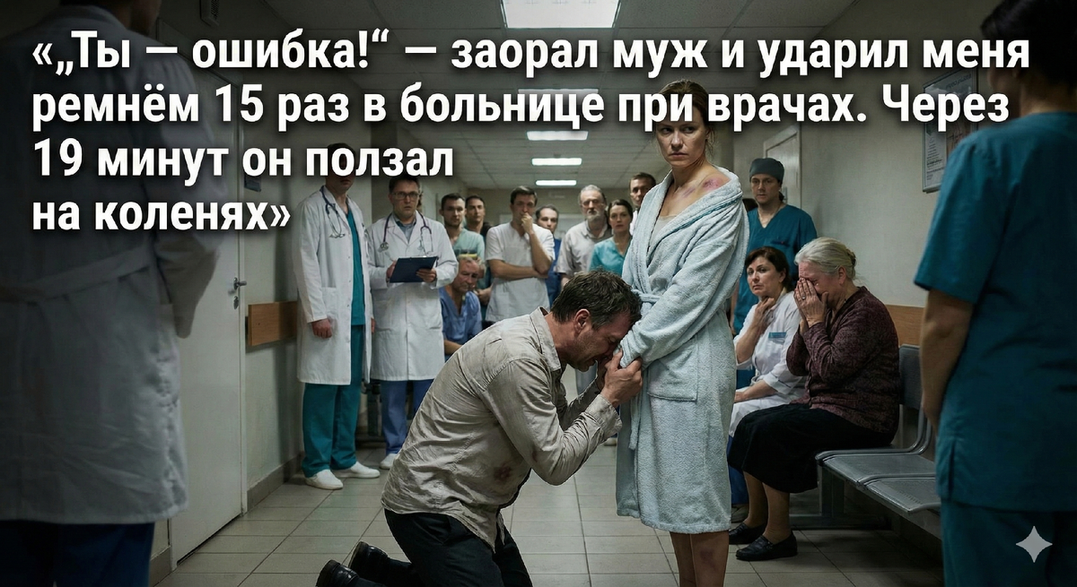 Вокруг были люди: медсёстры с капельницами, пациенты в полосатых халатах, дежурный врач. Вадим не видел их. Он сорвал с брюк кожаный ремень, и в его глазах полыхнуло то самое безумие, которое я видела дома, за закрытыми дверями.