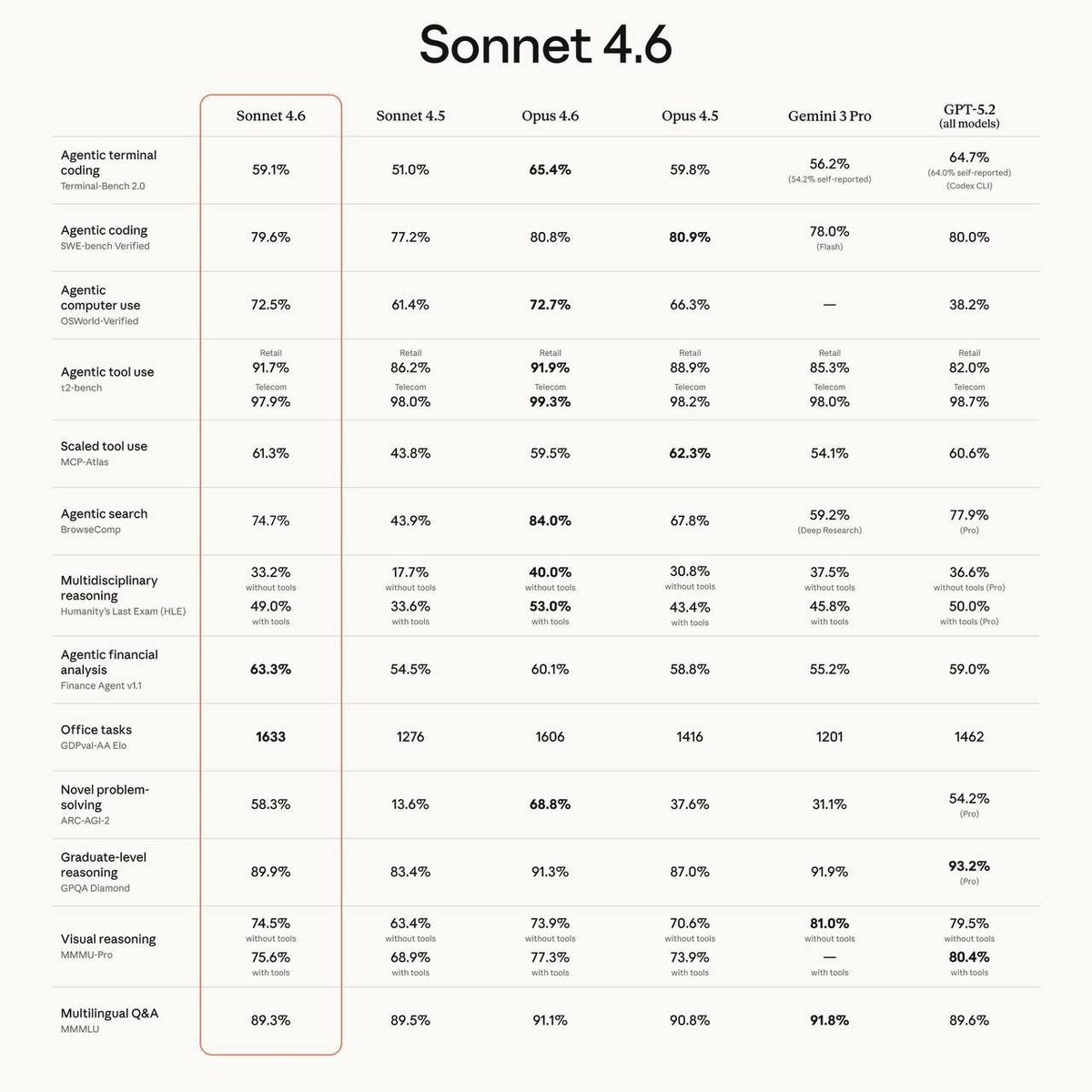 Anthropic выкатили Sonnet 4.6 — модель, которая закрывает всё: код, компьютер, логику в длинном контексте, агентное планирование, интеллектуальный труд и даже дизайн-прототипы 🎯 Что внутри? • 🧠 Логика: рассуждает в контексте до 1M токенов (бета) — это как загрузить целую библиотеку и спросить «что тут важного?» • 💻 Computer Use 2.0: управляет интерфейсами, кликает, скроллит, заполняет — как ты, только быстрее и без кофеина • 👨💻 Код-уровень Opus: пишет, дебажит, рефакторит — и объясняет, почему так, а не иначе • 🤖 Агенты по расписанию: планируешь задачу → Sonnet разбивает на шаги → исполняет → отчитывается • 🎨 Дизайн-мышление: не просто текст, а структура, визуал, прототип — от идеи к макету за один промпт ▌ Доступ — везде и сразу → Все тарифы Anthropic ✅ → Cowork для автоматизации рутины ✅ → Claude Code для разработчиков ✅ → API и облака (AWS, GCP, Azure) ✅ → Бесплатный план теперь тоже на Sonnet 4.6 + файлы, коннекторы, навыки, сжатие данных ✅ ▌ Фишка, которая меняет правила