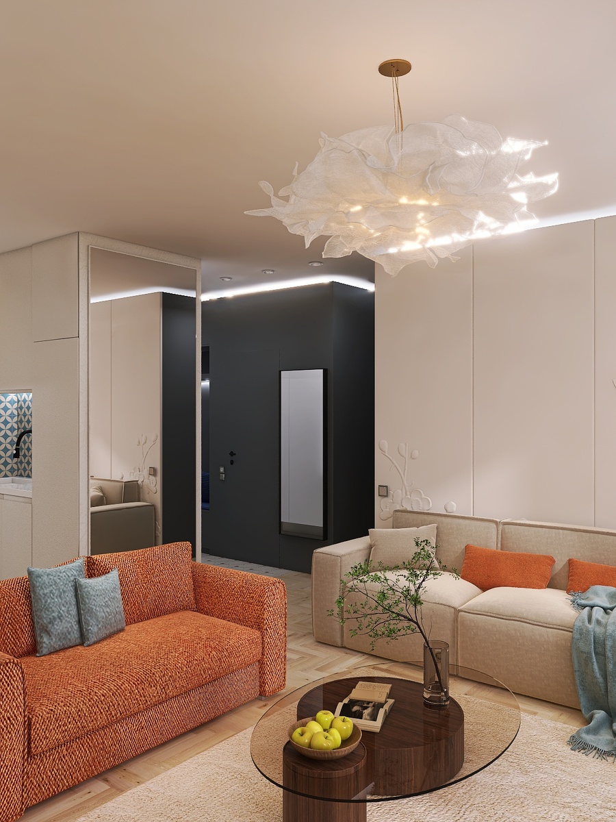 Кухня-гостиная для активной и творческой семьи, где самые важные моменты сохранились в интерьере !